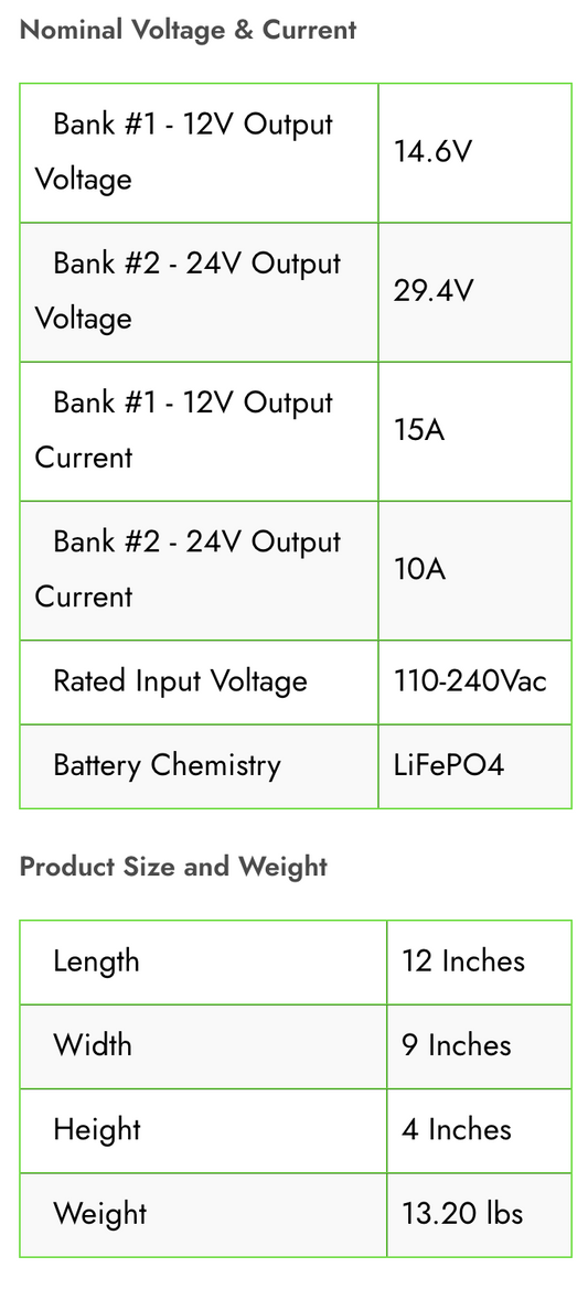 24V (2) Bank Lithium Ion Charger - 12V/15A 24/10A