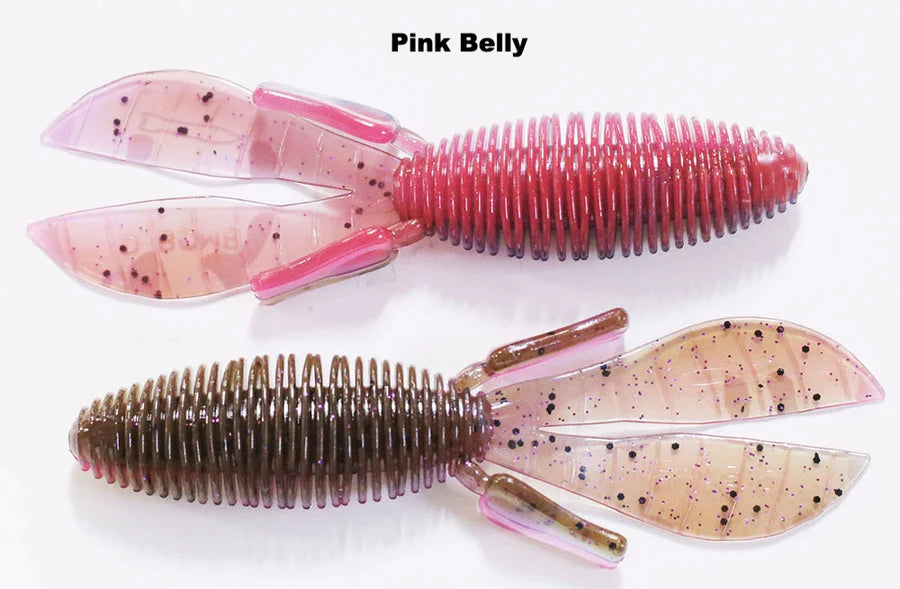 Pitching and flipping has a new go-to bait. D Bomb is a bulky 4 ” creature bait with a unique ribbed body that displaces lots of water resulting in a straight fall. The tails sail when left connected or flap wildly when separated. The body is thinner where the hook comes out for easy hook sets but has a thicker head so the bait stays on the hook. 6 per pack